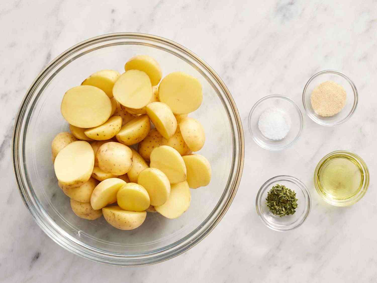 - 1 pound baby potatoes, cut into quarters