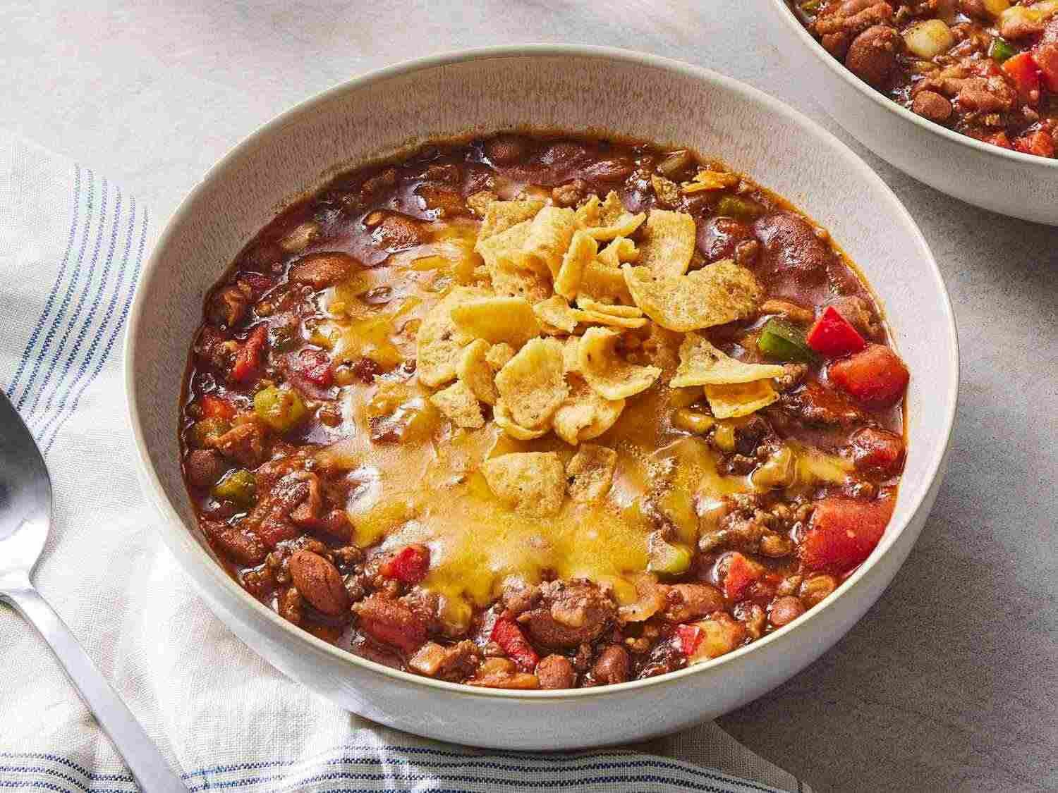- Step 5:To serve, ladle hot chili into bowls and top with corn chips and Cheddar cheese. Enjoy! Dotdash Meredith Food Studios